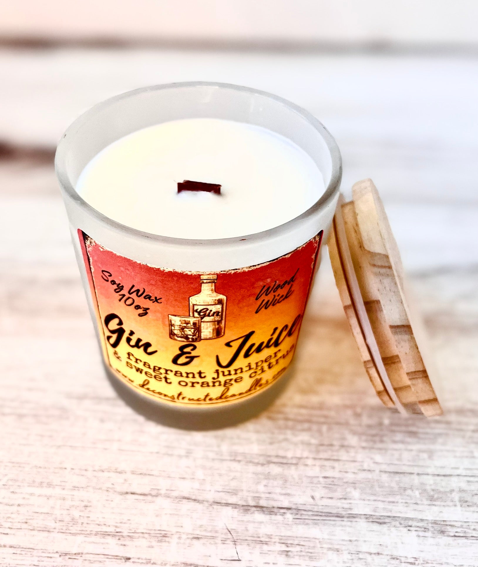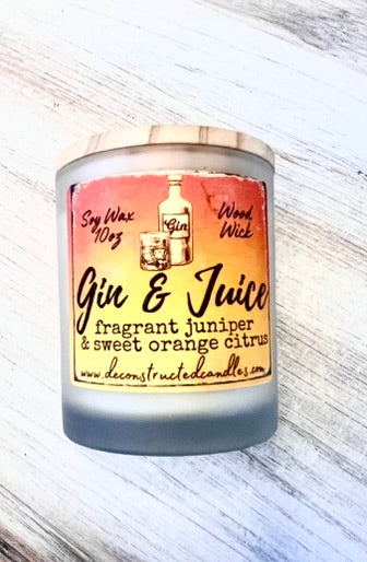 Gin & Juice 10oz SOY Candle - Wood Wick - Frosted clear glass container with wood lid