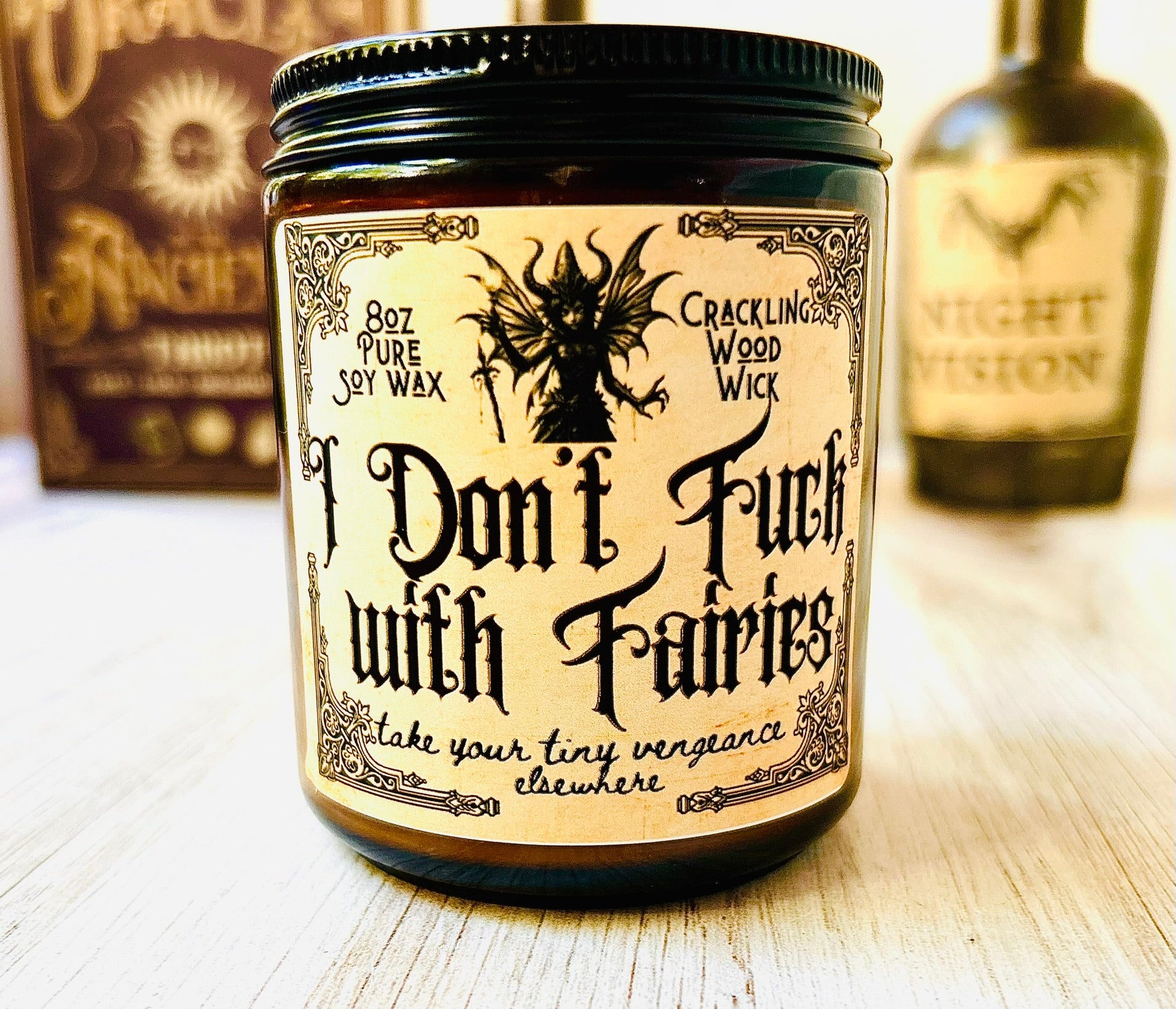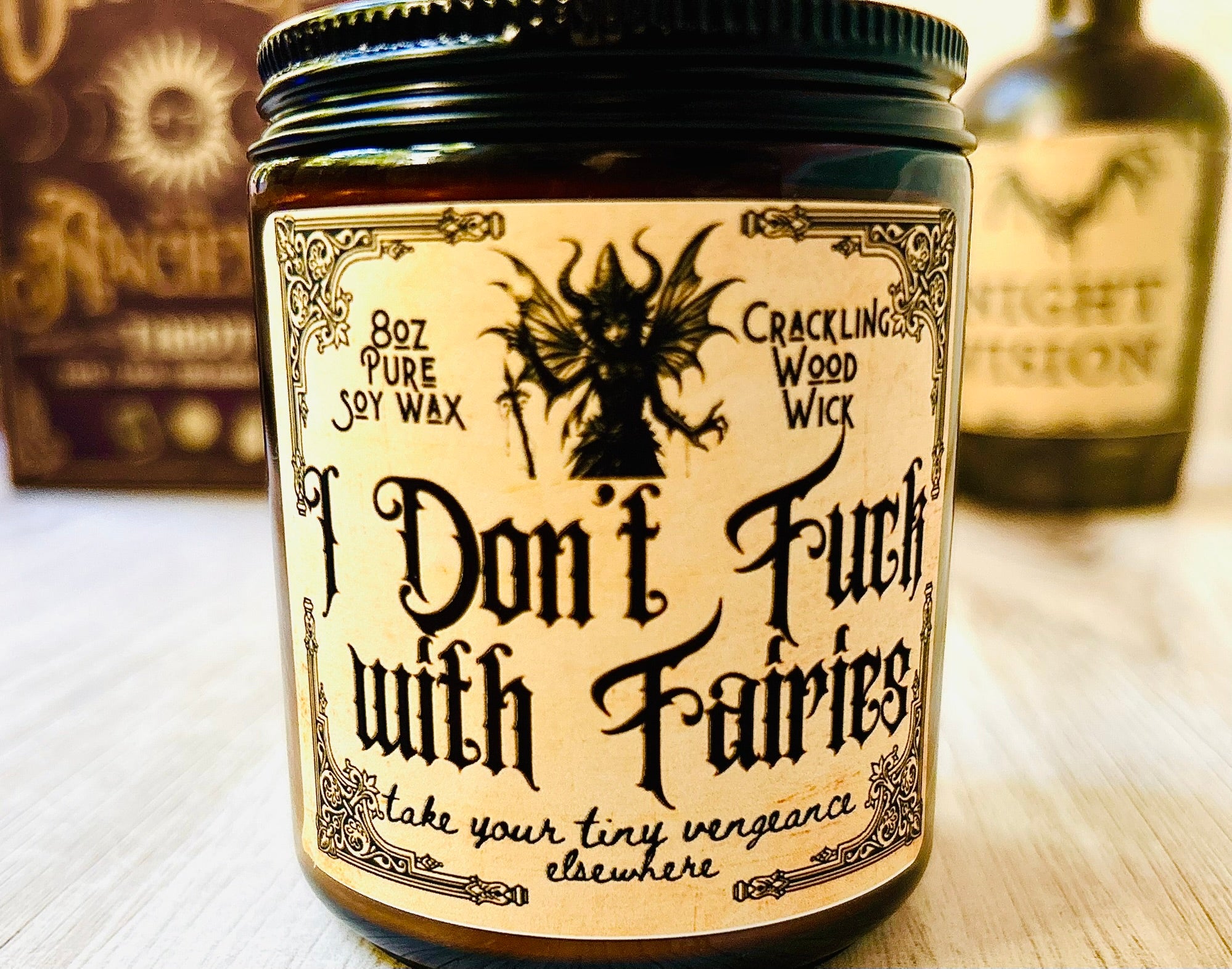 I don't fuck with Fairies Amber 8oz Crackling Wood Wick Soy Wax Choose your Scent